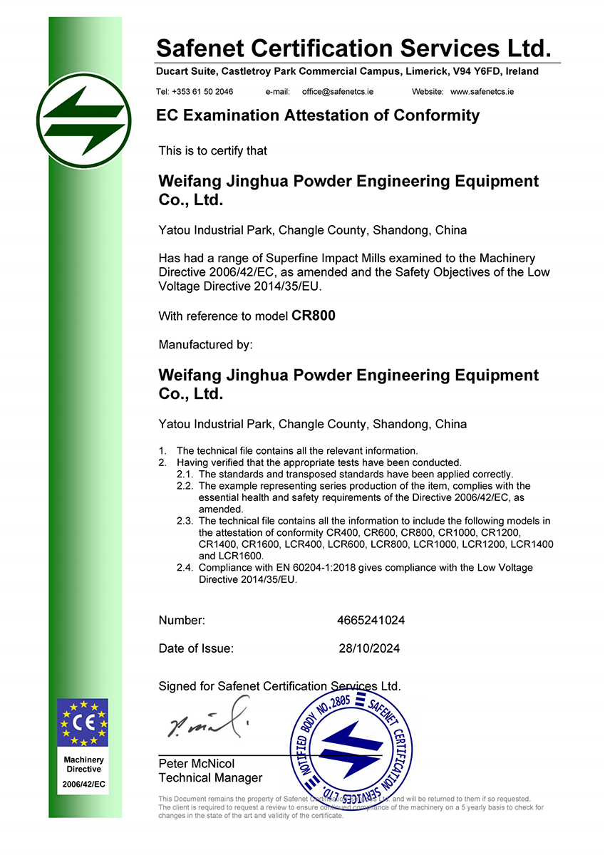 · 2018年6月氣流粉碎機通過歐盟CE認(rèn)證;
